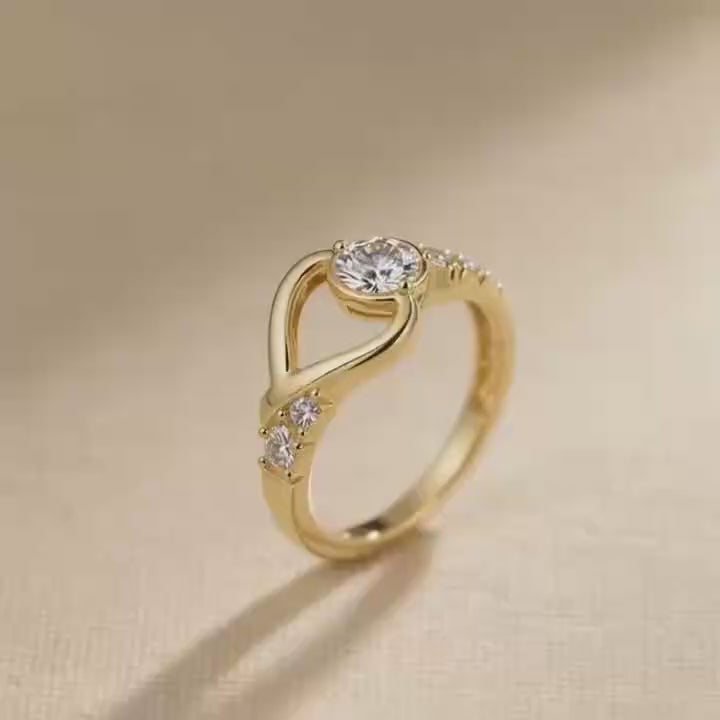 Crafted for the free-spirited modern woman, this 18K yellow gold ring features a 1.02 ct oval-cut center labgrown diamond (IGI-certified) embraced by geometric diamond accents. The reversible design offers dual style. Lightweight and ergonomic, it celebrates 2025’s vintage revival with an open-heart silhouette symbolizing independence. Custom engraving available (max. 10 chars).