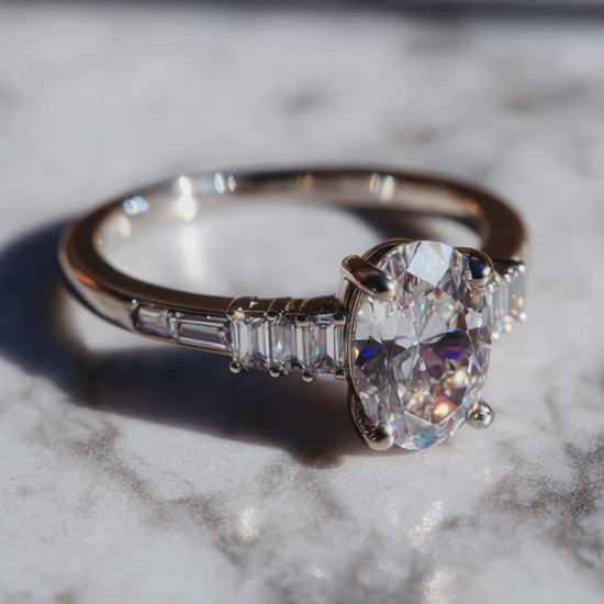 Double Track Shank: Micro-set baguette diamonds (0.15ct total) create subtle sparkle from every angle