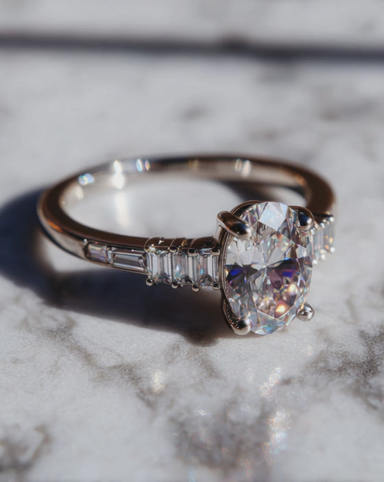 Center Stone: 3-carat oval brilliant cut lab-grown diamond (IGI certified)