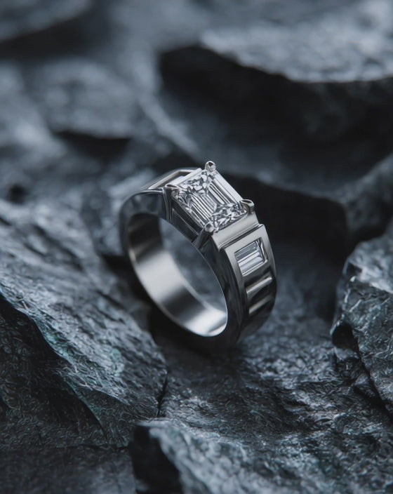 The "Guardian's Ring" is designed for the modern man who values integrity and quality. Featuring a centerpiece of over 2.2 carats of IGI-certified emerald cut lab-grown diamond, its clear luminosity and geometric lines exude an understated power. Crafted in solid 950 platinum, the asymmetrical stepped shank design is inspired by themes of protection and balance, offering a secure fit and contemporary artistic appeal. The original design is verified with AIGC content authentication, ensuring its uniqueness. This ring is an excellent jewelry choice for expressing personal style and inner conviction.